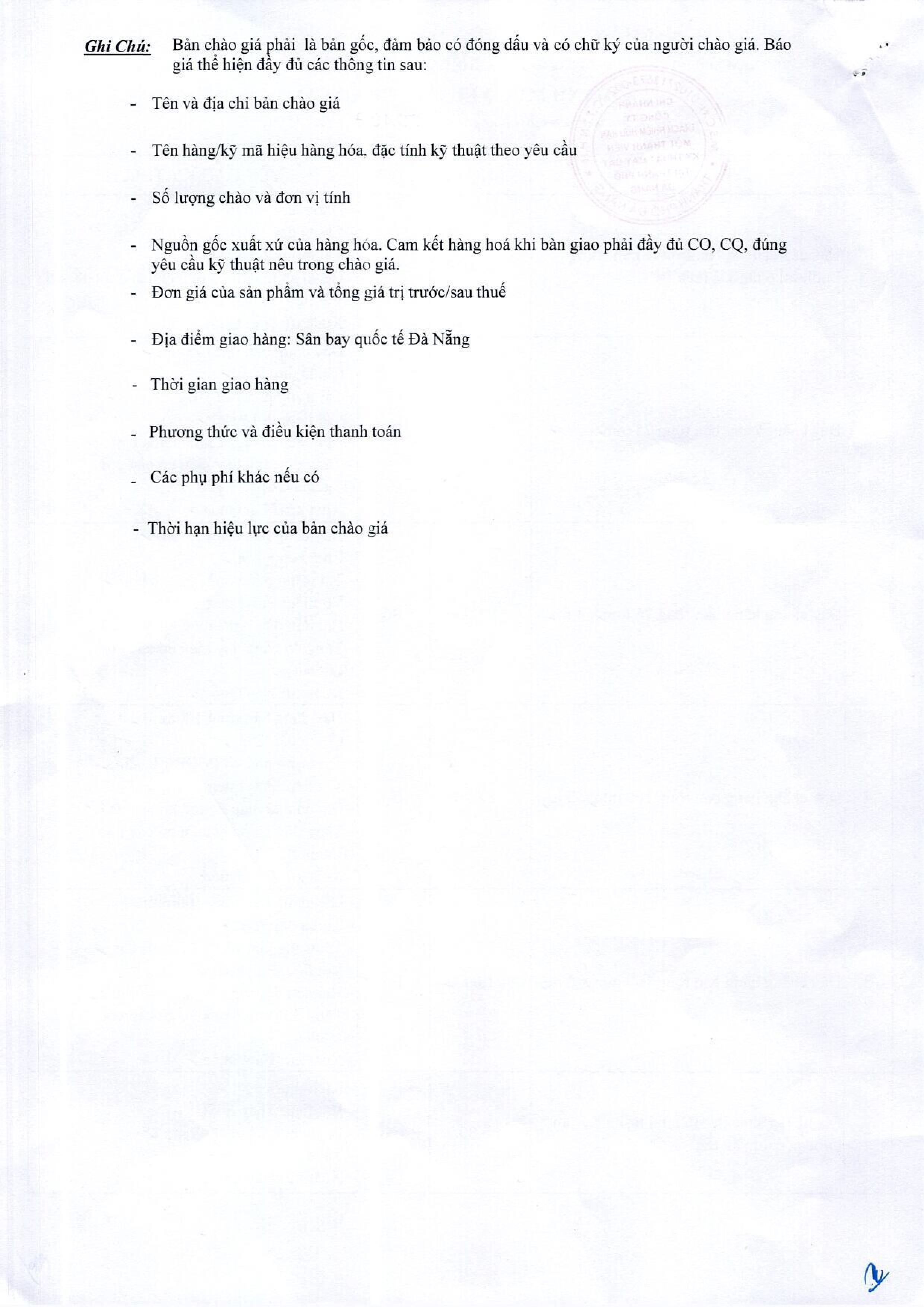 Chi nhánh Công ty TNHH MTV Kỹ thuật máy bay tại TP. Đà Nẵng (VAECO DAD) có nhu cầu đặt hàng mua các sản phẩm theo danh mục yêu cầu chào giá bằng hình thức lựa chọn chào giá. Đính kèm là chi tiết danh mục yêu cầu chào giá.