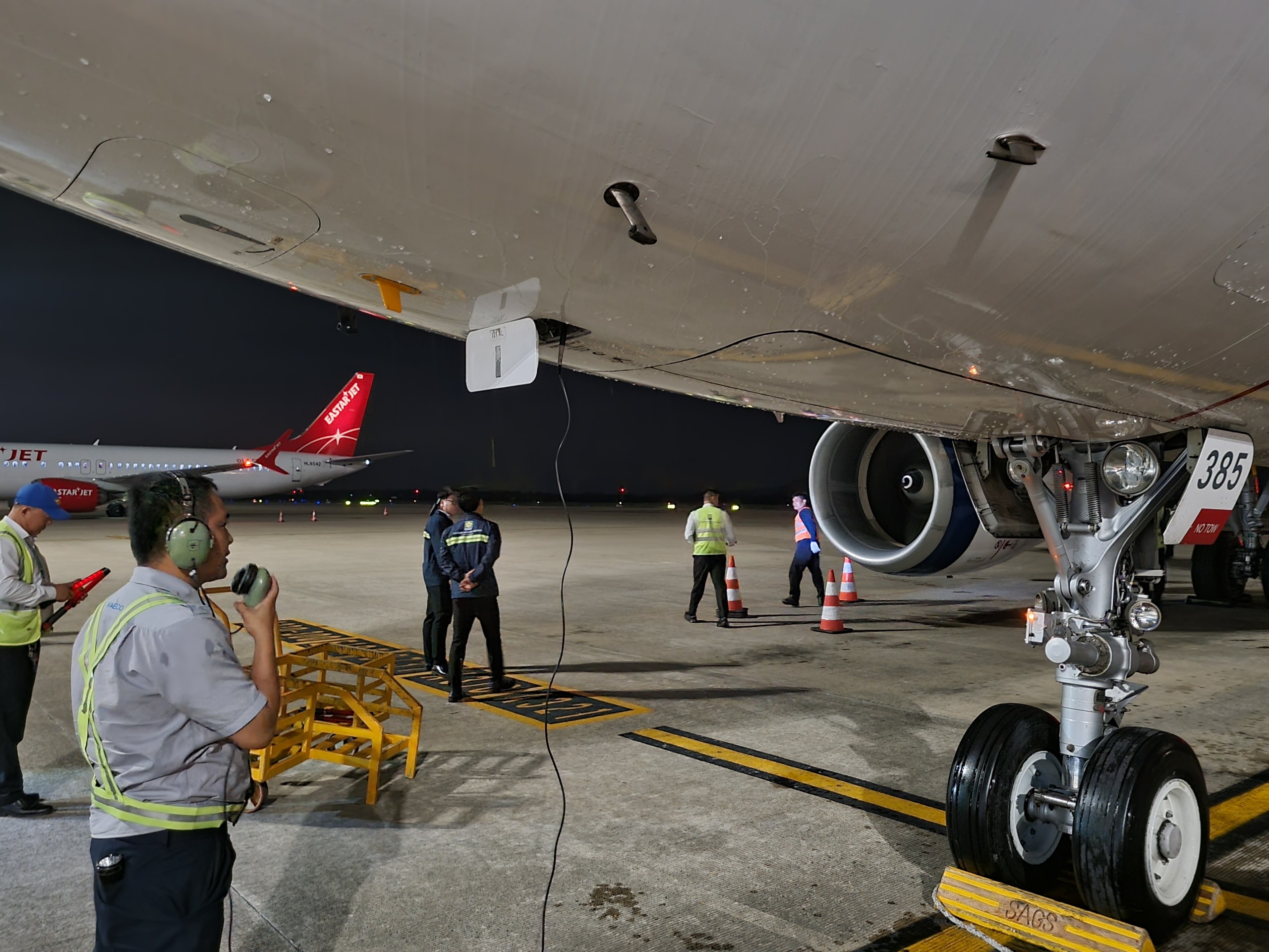 The welcoming of the first flight of the day, with 170 passengers landing at Da Nang Airport at 00:45 on February 6, 2024, had the participation of VAECO technical staff.
