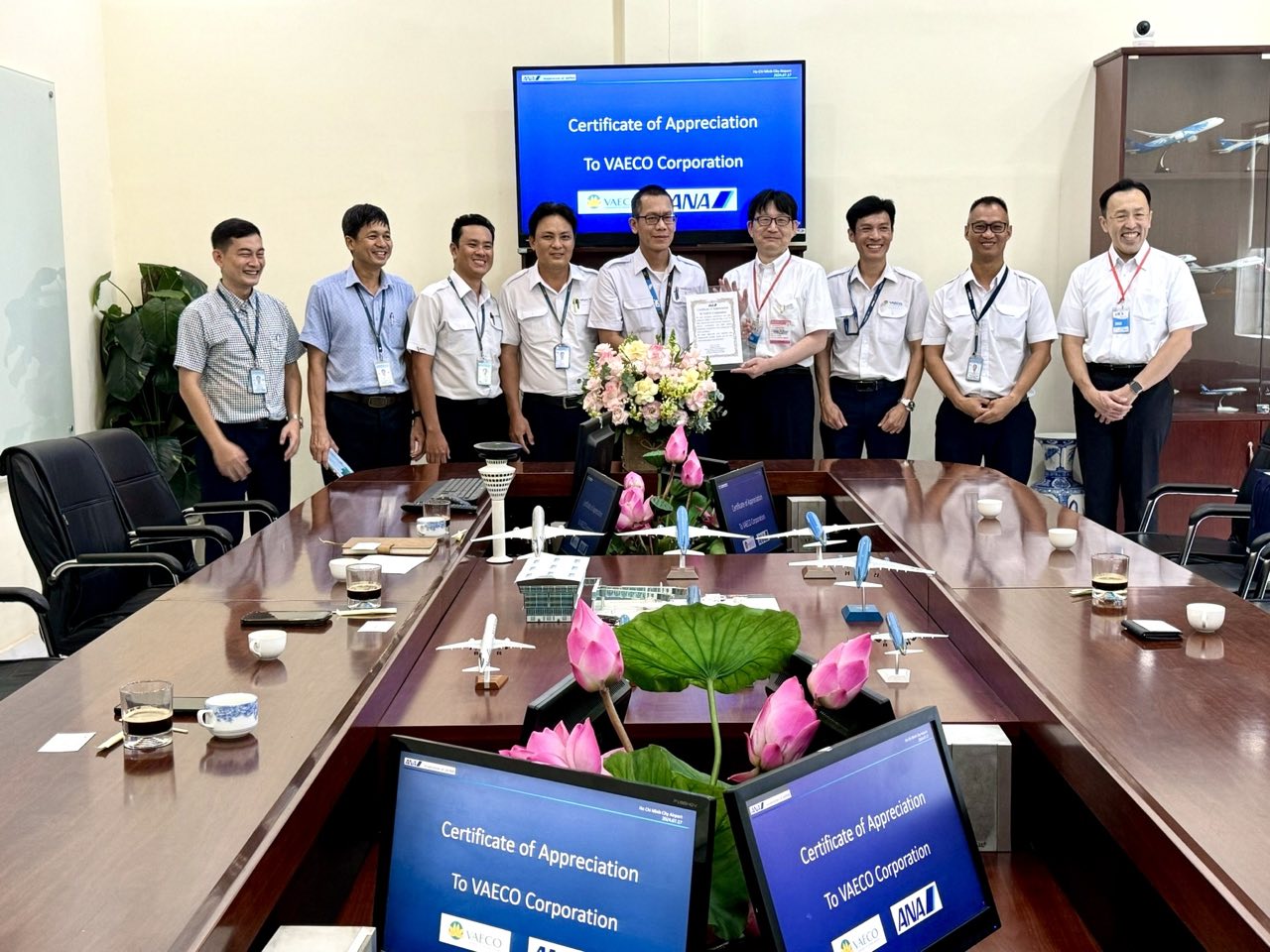 On July 17, 2024, at its Ho Chi Minh Branch, VAECO was honored to receive Certificates of Appreciation from two prestigious international airlines, All Nippon Airways (ANA) and EVA Air. This recognition highlights VAECO's tireless efforts in providing high-quality and timely technical support services.