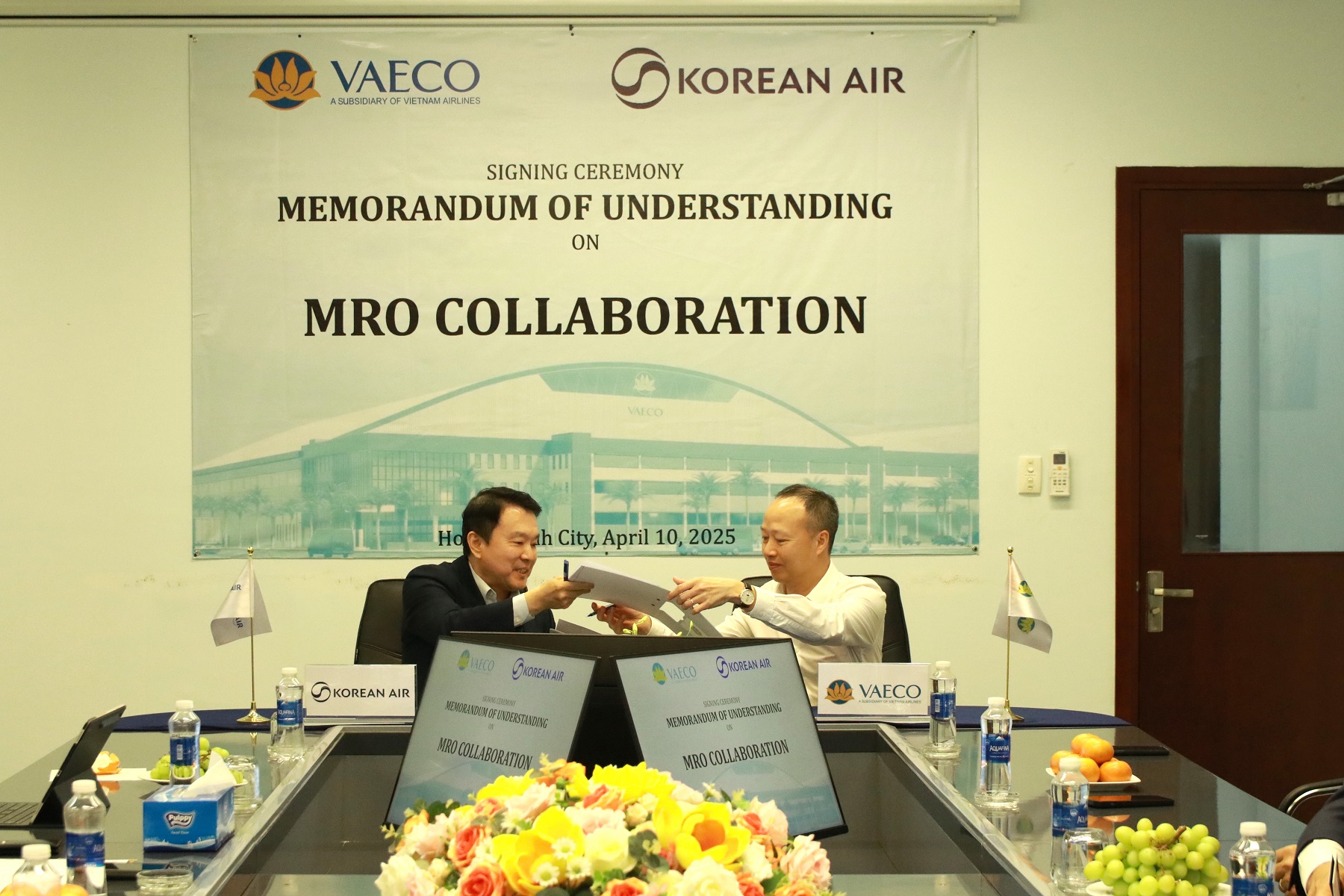 In the morning of April 10, 2025, at the Ho Chi Minh City Branch of Vietnam Airlines Engineering Company Ltd. (VAECO), a Memorandum of Understanding (MOU) was signed between VAECO and Korean Air for MRO Collaboration at Long Thanh International Airport.