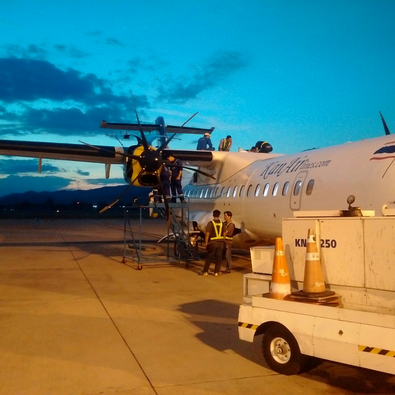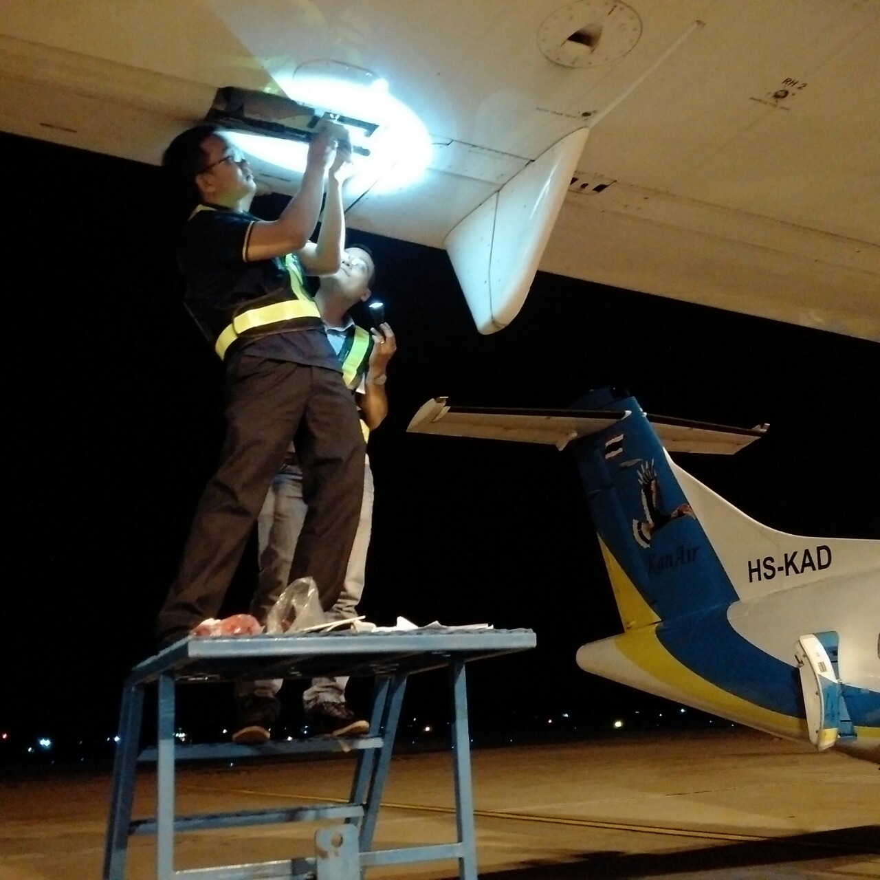 As requested, VAECO has sent a maintenance team including 1 CRS B1 full, 1 CRS B2 full, 2 mechanics, 1 dock planner, 1 CRS of sheet-metal level 3, 1 QC and 1 coordinator to Chiang Mai, Thailand to perform 1Y check for an ATR72 aircraft reg. HS-KAD of Kan Airlines. The maintenance performance was carried out within 12 hours, from 5pm on November 18 to 5am on November 19, 2015. Acting professional, promptly, and accurately is the good feedback from Kan Airlines after the maintenance performance finished. A cooperation agreement between VAECO and Kan Airlines in C2, C3 and C4 maintenance is under consideration.