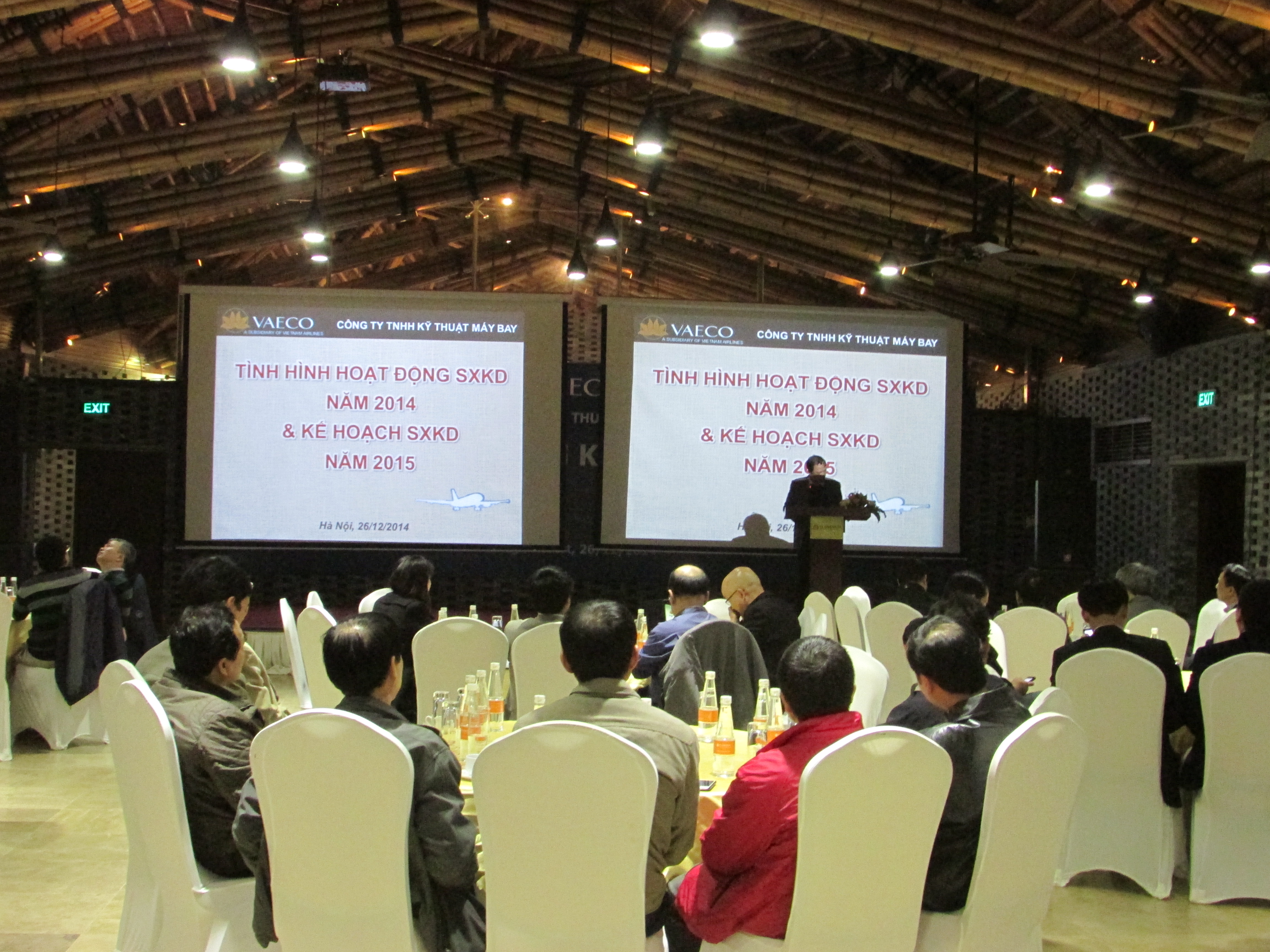 On 26 December 2014, a year-end meeting was organized with the presence of Vietnam Airlines Vice President and VAECO’s Chairman of the Board of Directors, Mr. Nguyen Ngoc Trong, VAECO President and CEO, Mr. Tran Van Dong, Vice Presidents and other representatives of VAECO’s Departments and Centers. The main purpose of the meeting was to review the business activities over the past year and bring up the business orientation/targets for 2015 and the following years. New aircrafts of A350 and Boeing 787 will be put into operation for Vietnam Airlines, as well as the completion of procedures and other requirements for EASA’s approval will make 2015 a busy year for VAECO.