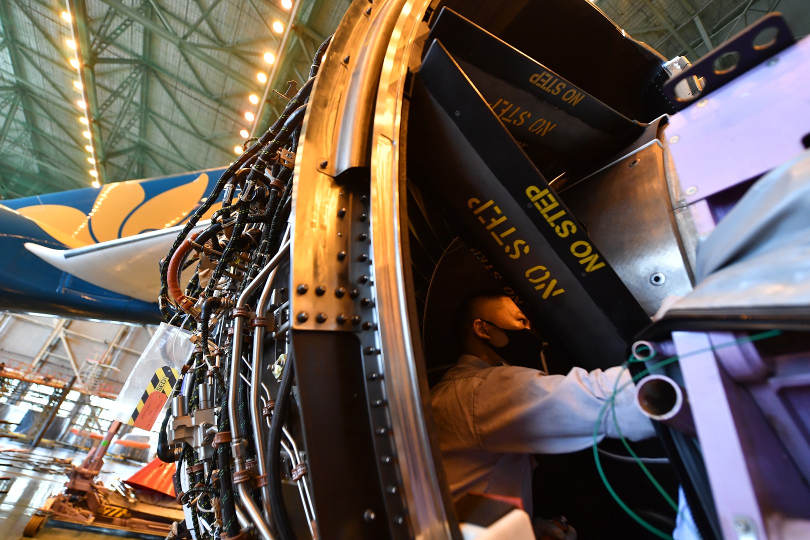 Trong đó, kiểm tra, bảo dưỡng động cơ máy bay là một trong những ưu tiên hàng đầu. Trong thời gian nằm sân vì ảnh hưởng của đại dịch, các tàu bay đều được bọc động cơ bằng vải bạt. Mục đích để ngăn ngừa các vật thể lạ bay vào trong động cơ.