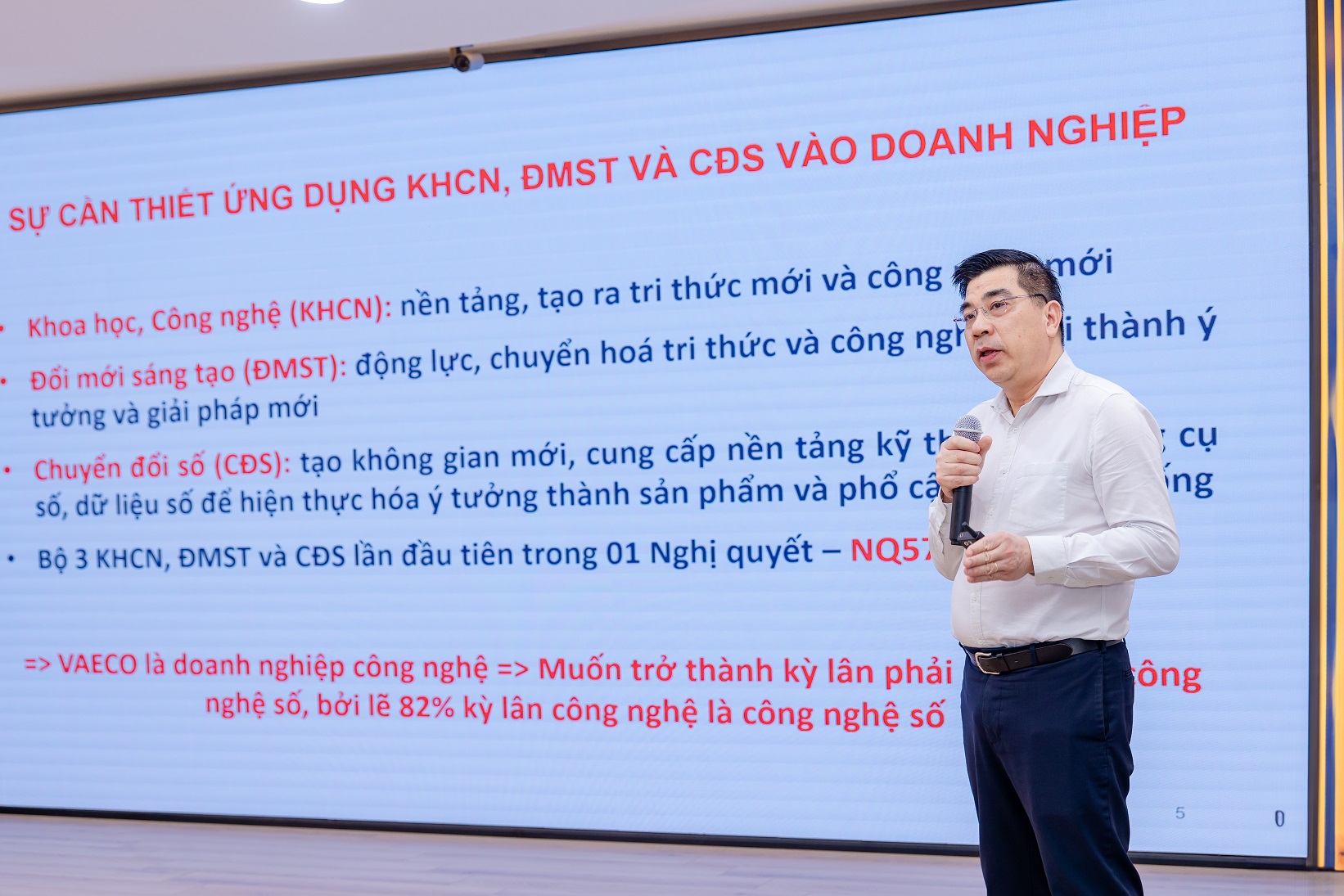 Ngày 09/6/2025, VAECO tổ chức Ngày hội Chuyển đổi số với chủ đề “VAECO - Làm chủ công nghệ, kiến tạo tương lai” tại VAECO HAN (Hội trường tầng 3, nhà 3 tầng) và kết nối trực tuyến tới các chi nhánh tại Đà Nẵng và TP. Hồ Chí Minh.