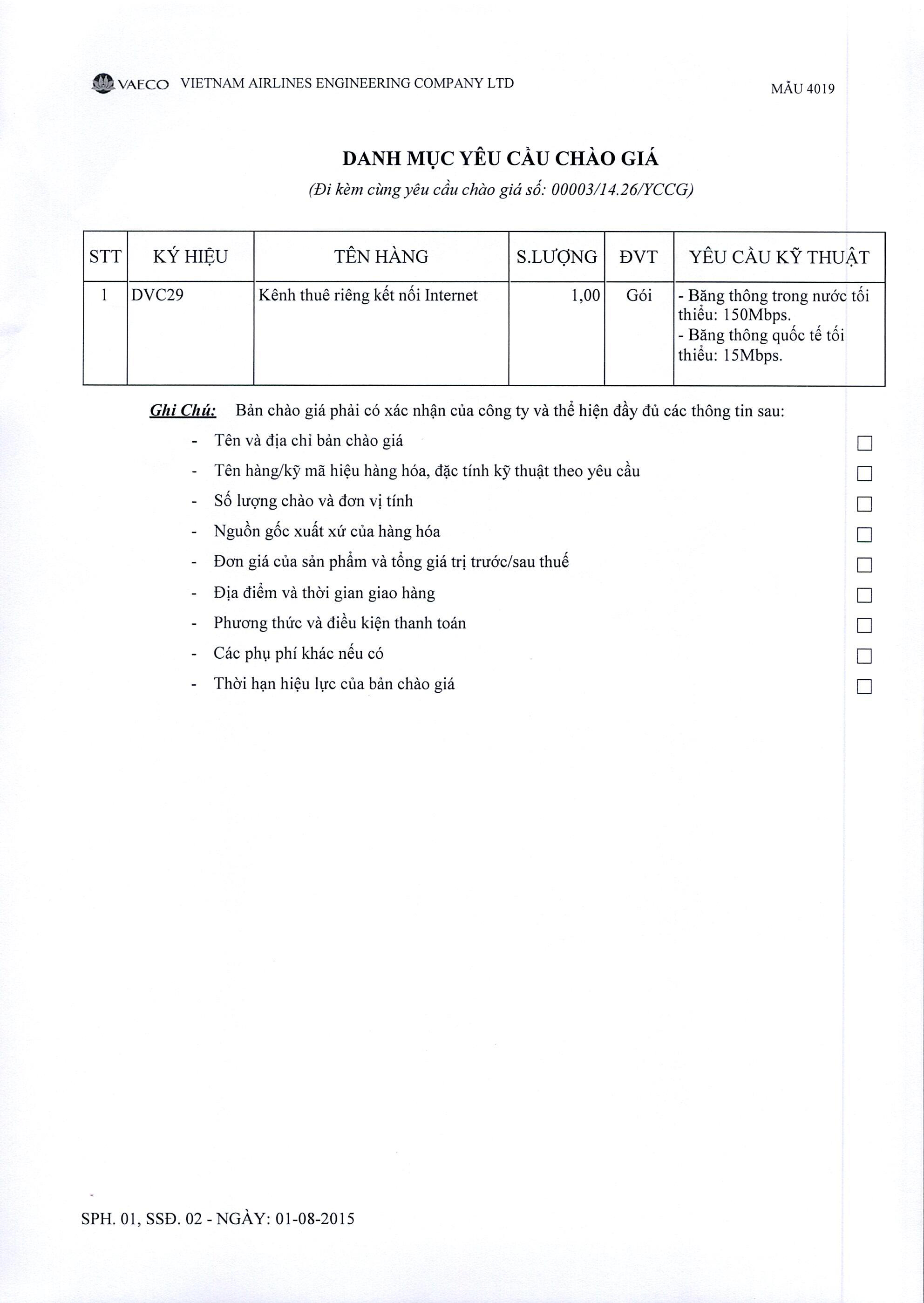 Yêu cầu chào giá Kênh thuê riêng kết nối Internet